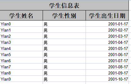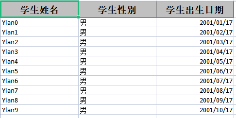 private List<Student> data() { ArrayList<Student> students = new ArrayList<>(); for (int i = 0; i < 10; i++) { Date date = Date.from(LocalDate.of(2001, i + 1, 17).atStartOfDay().atZone(ZoneId.systemDefault()).toInstant()); Student student = Student.builder().name("Ylan" + i).gender("男").birthDate(date).build(); students.add(student); } return students; } }