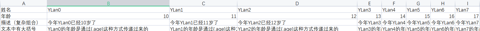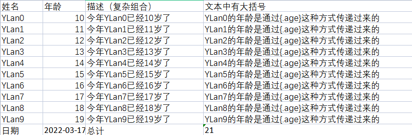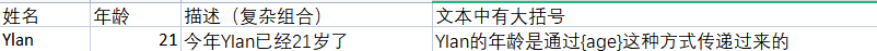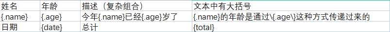 Excel表格中用**{}包裹表示要填充的变量,如果单元格文本中本来就有{},需要在括号前面使用斜杠转义{}。