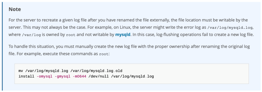 mv /var/log/mysqld.log /var/log/mysqld.log.old