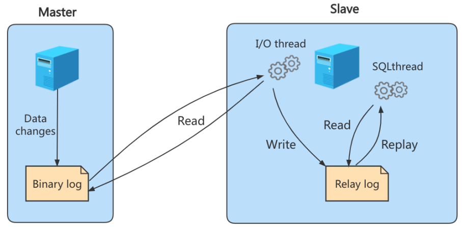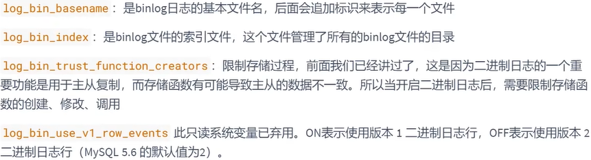 - 中继日志:用于主从服务器架构中,从服务器用来存放主服务器二进制日志内容的一个中间文件。 从服务器通过读取中继日志的内容,来同步主服务器上的操作。
