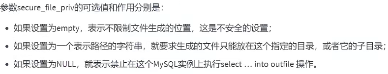 1 | mysql> SHOW GLOBAL VARIABLES LIKE '%secure%'; |