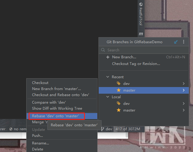 将dev分支以master进行变基
